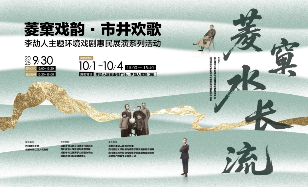 此次展演戏剧《菱窠水长流》将于9月30日至10月4日在李劼人故居纪念馆连续上演5天。作为锦江区与四川师范大学校地合作的重要文化实践,此次环境戏剧展演既深入挖掘了李劼人的精神文化内涵,又是高校艺术教育融入社会服务、推动文化惠民的一次积极探索。