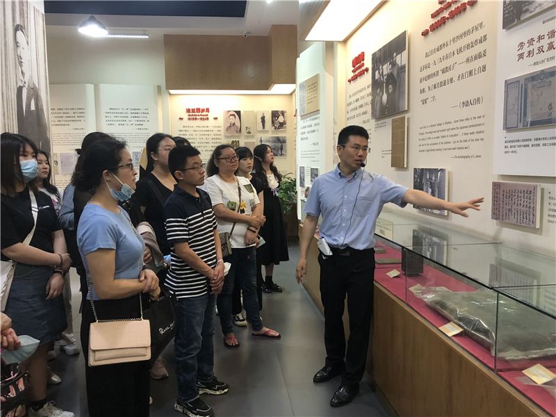 主题活动讲解结束后,大家一起参观了李劼人生平事迹展厅,我馆工作人员重点讲解了李劼人先生在文学和实业上取得的成就。巴金先生说:“他(李劼人)是成都的历史家,过去的成都活在他的笔下。”郭沫若先生说:“(李劼人)凭借着各种各样的典型人物,把过去了的时代,活鲜鲜地形象化了出来。”李劼人的文学创作是“活”的,他是“成都日常生活的观察者和发现者”,他的文学作品提供了“清末民初社会的一个横切面”。李劼人还是爱国实业家,他所主持的嘉乐纸厂在抗日战争与解放战争时期,为文化事业做出了重要贡献;他提出设立“文化事业补助费”,无偿的资助大中小学、孤儿院、慈善机构、贫病作家、文化团体。